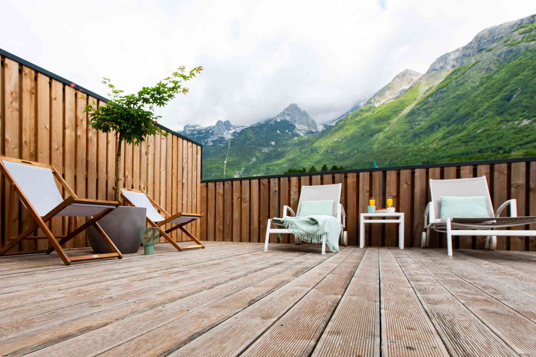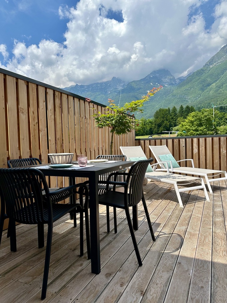 Sprostite se na terasi veliki 33 m². Čudovit razgled na Kanin in sosednje hribe, je kot nalašč za sprostitev po dolgem dnevu.